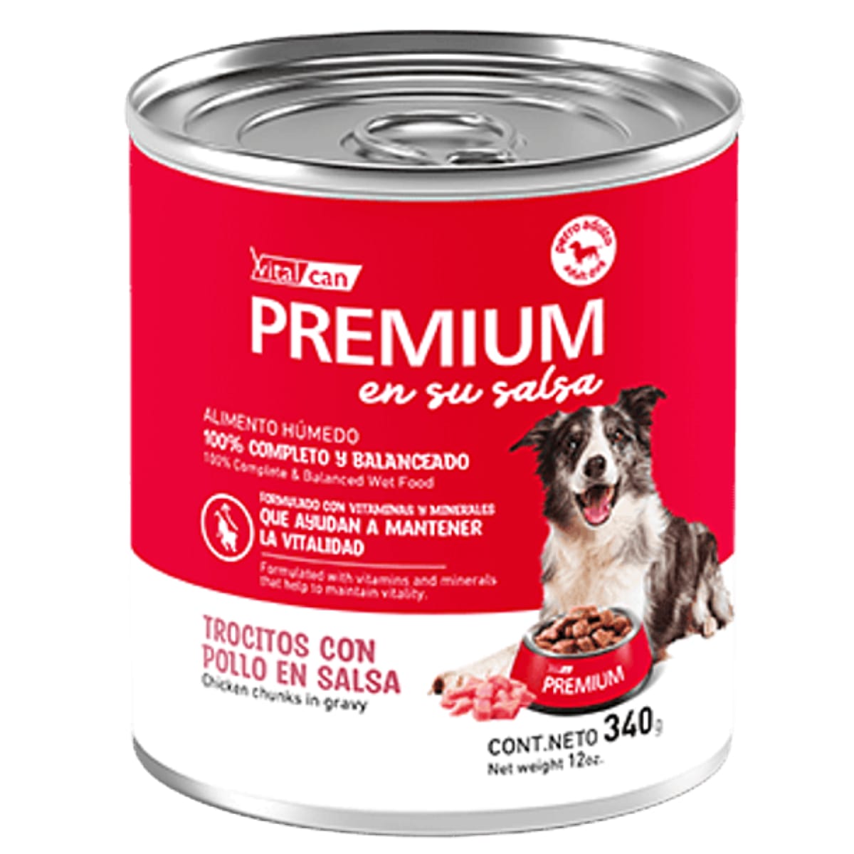 Alimento Húmedo- Lata Vitalcan Premium Trocitos con Pollo en Salsa para Perro Adulto 340gr