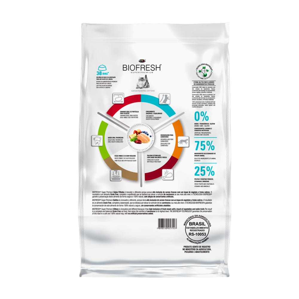 - Favorece a la salud oralLa tecnología Biofresh garantiza la conservación de este alimento de forma 100% natural y segura, sin conservantes artificiales añadidos. Indicado para gatitos hasta el año de edad.