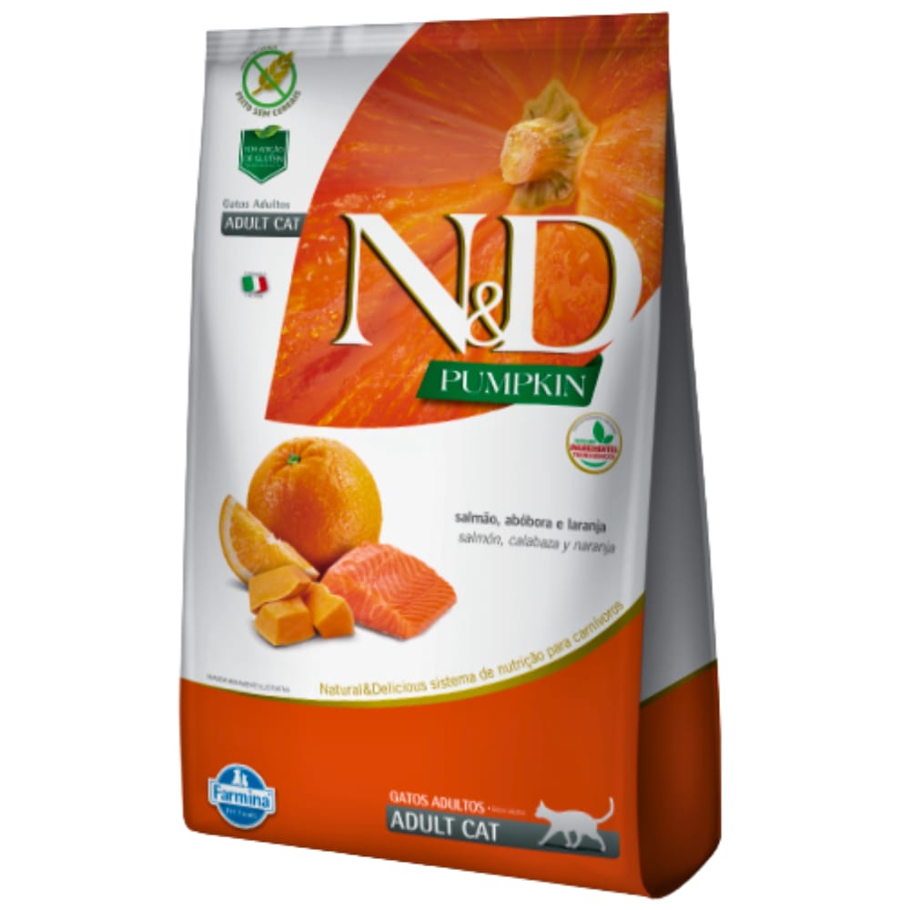 Farmina N&D Pumpkin, Salmón, Calabaza y Naranja es un alimento premium para gatos, elaborado con ingredientes naturales y sin cereales. Su fórmula combina salmón fresco, una fuente de proteína altamente digestible, con calabaza y naranja, que aportan fibra, antioxidantes y vitaminas esenciales para el bienestar de tu mascota.