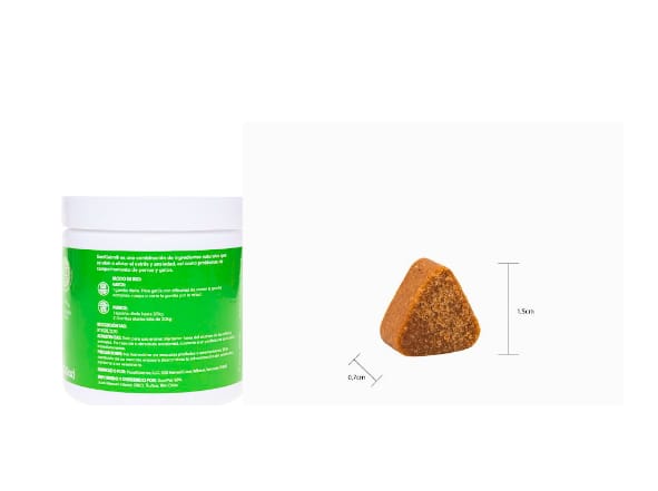 • Extracto de té verde (Camellia sinensis): Rico en L-teanina, que favorece la calma sin causar somnolencia, ayudando a mantener a la mascota serena y alerta.”