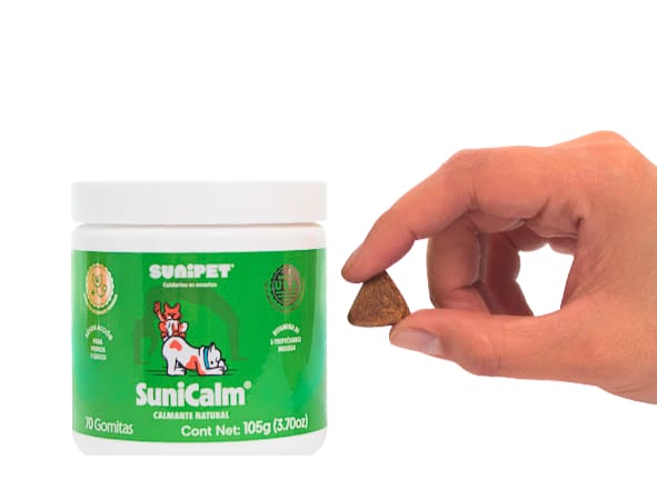 Situaciones como viajes, visitas al veterinario o fuegos artificiales pueden provocar estrés, ansiedad, miedo e incluso problemas de comportamiento. SuniCalm® es un calmante natural para perros y gatos que ayuda a reducir la ansiedad y a enfrentar momentos de estrés de forma segura y efectiva. Sin fármacos ni efectos secundarios. Apto para mascotas alérgicas: Fórmula 100% natural, libre de proteínas de origen animal.