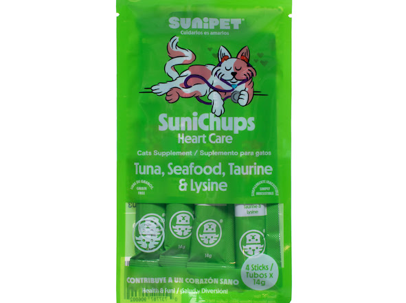 Con la edad o por predisposición genética, algunos gatos pueden desarrollar problemas cardíacos que afectan su calidad de vida y energía diaria. SuniChups Heart Care es un snack funcional que apoya la salud cardiovascular felina, fortalece el músculo cardíaco, mejora la circulación y ayuda a mantener el corazón en óptimas condiciones. Su fórmula incluye Extracto de Almeja, Taurina y L-Lisina. • Extracto de almeja, rico en nutrientes como ácidos grasos, zinc y magnesio que favorecen la circulación y la función cardíaca.