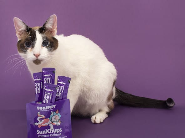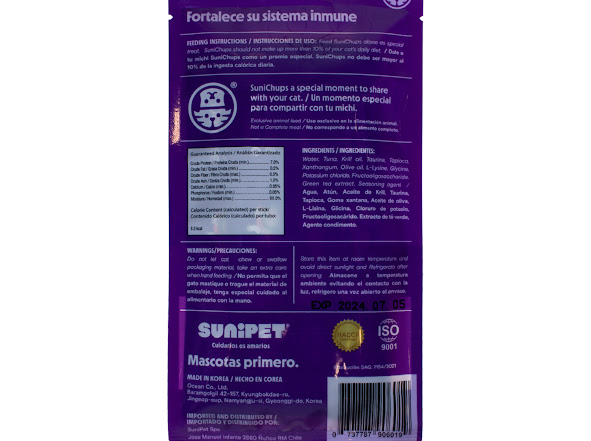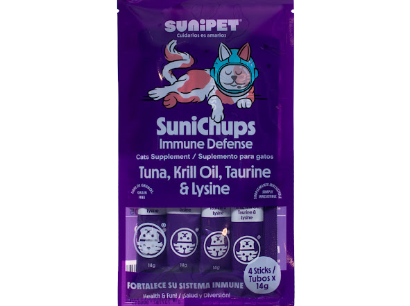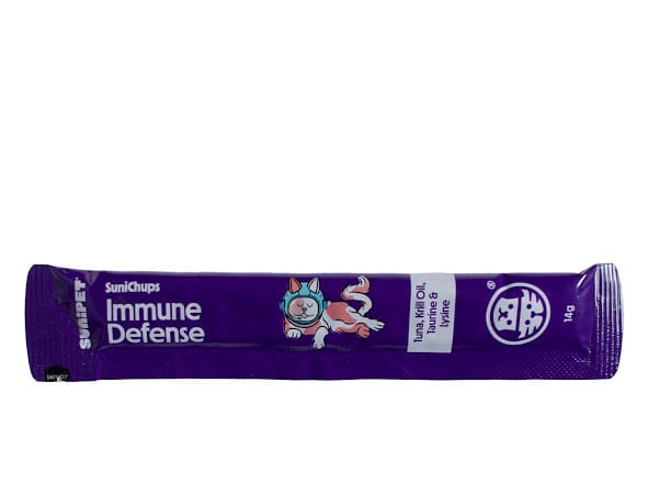 “¿Tu gato suele enfermarse con frecuencia? Un sistema inmune debilitado puede hacer que tu gato sea más propenso a infecciones, especialmente en etapas de crecimiento, vejez o por cuadros virales. SuniChups Immune Defense es un snack funcional que ayuda a reforzar las defensas naturales de tu gato. Apoya el sistema inmunológico y reduce el impacto del estrés oxidativo, fortaleciendo su salud gracias a su fórmula con Aceite de Krill, Taurina y L-Lisina.